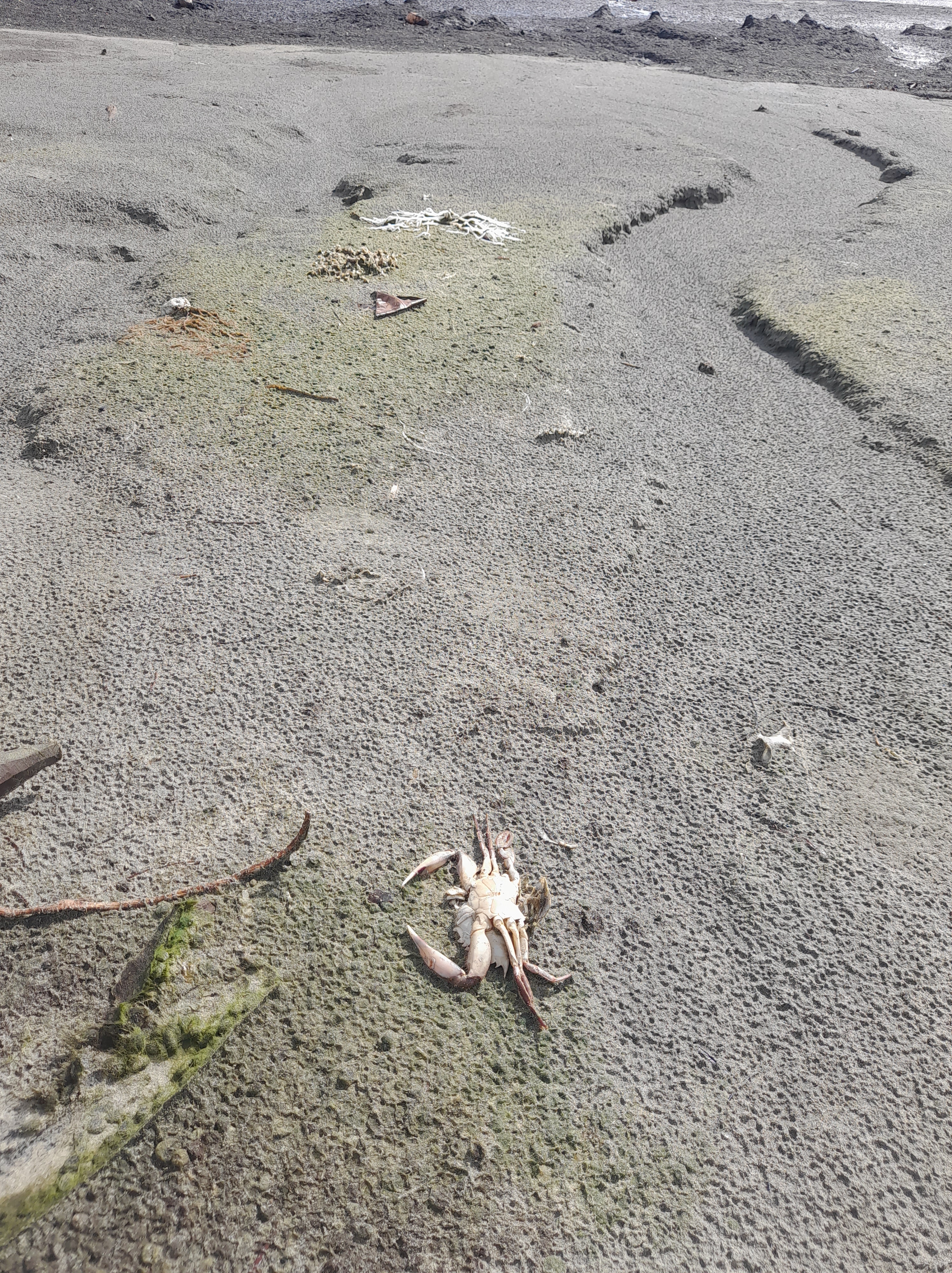 Le fond marin est désertique, pas de coraux, peu de poissons, quelques crabes, …