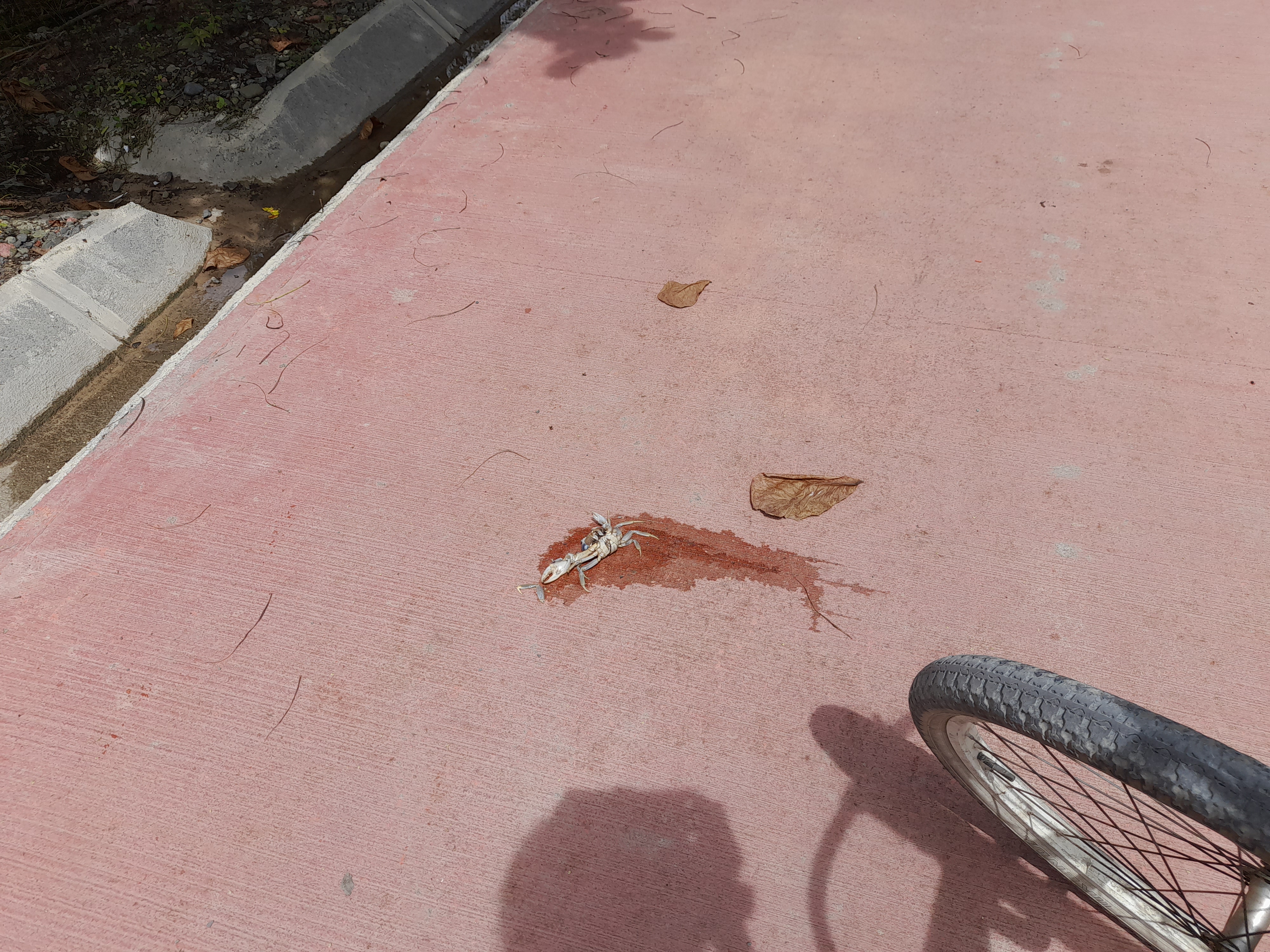 Les plages doivent être accessibles, les touristes libres de parcourir l’île, d’où la réfaction des routes, désormais deux fois plus large, avec un espace pour les usagers humains pédestres, et un autre pour les cyclistes. Le long de cette route, à Ygriega, au carrefour en direction de « Bocas del Drago », en 2024, la parcelle de jungle a disparu, remplacée par des fondations en béton pour accueillir une grande surface. Durant trois semaines sur l’île de Colon, les animaux sauvages que j’ai rencontré sur l’île, à l’exception de deux paresseux, étaient morts écrasés sur la nouvelle route. Des crabes se perdent en ville, où sur les dance floor des touristes. Les espaces de vie/survie ne permettent plus aux non humains de se protéger des activités humaines. Ces espaces sauvages rétrécissant, ils sont aussi davantage convoités pour les activités touristiques et de fortes crispations, voire conflits avec usage de sorcellerie, peuvent advenir pour la possession de l’espace.