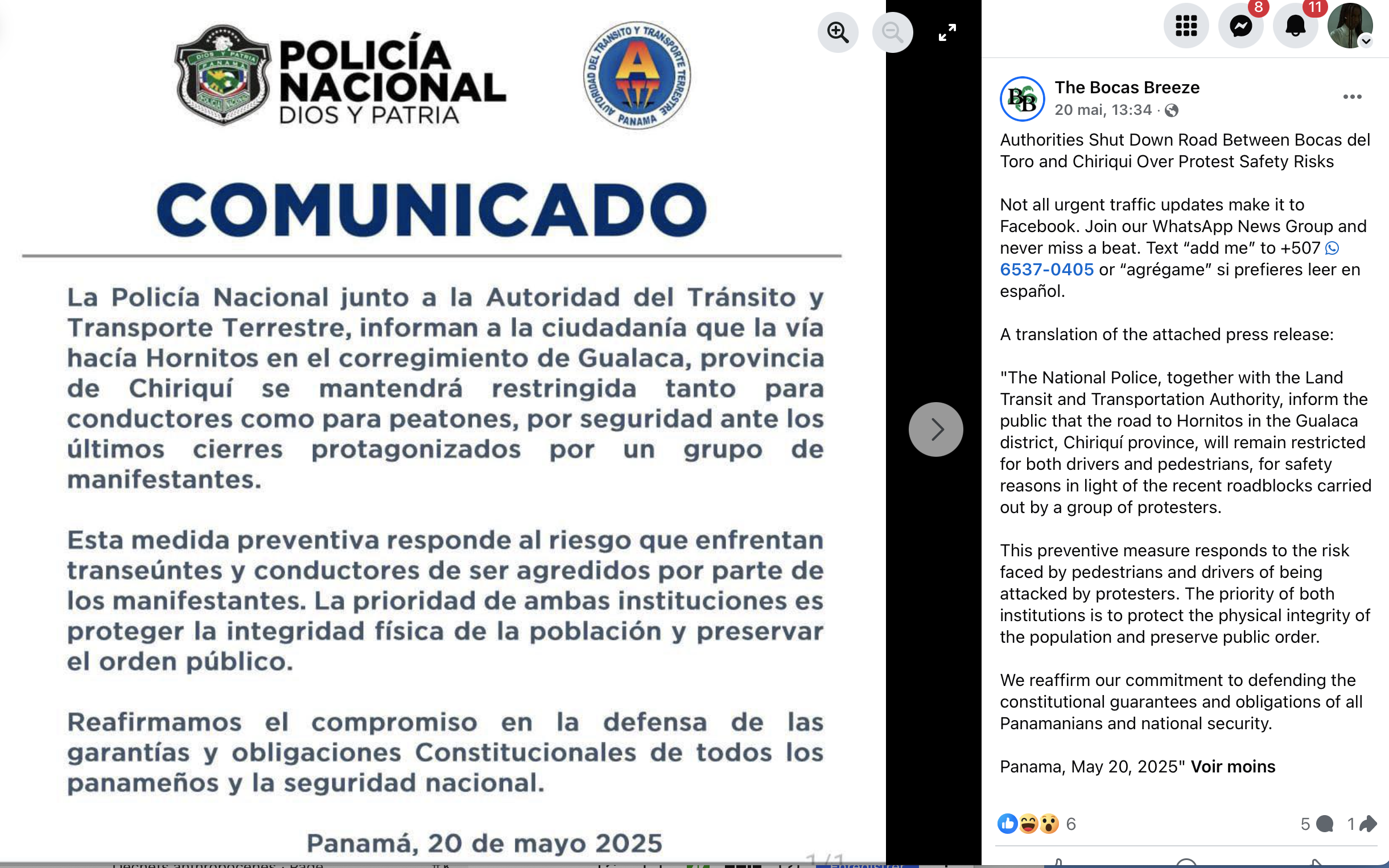Además, mencionó que, en los últimos cinco años, Bocas del Toro enfrenta una crisis prolongada que ha deteriorado profundamente la calidad de vida de sus habitantes, y que el nuevo conflicto agrava la situación, por lo que propusieron el establecimiento de un puente marítimo, como se ha hecho en el pasado, para asegurar el abastecimiento de insumos.
