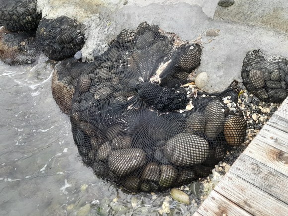 Lors de ce quatrième voyage, un « œuf de Colomb », si j’ose dire, avait étendu le champ de la recherche sur les résiliences locales du Vivant pour lutter contre le dérèglement climatique anthropocène grâce aux déchets (végétaux) : l’agentivité de l’objet-déchet : au fond de la mer de la plage “R”, une buse en béton a recréé le seul biotope de cet espace de plage désertifié. Cette buse a-t-elle été abandonnée, oubliée, jetée par des ouvriers ? Ou s’est-elle échappée ? Glissant vers un autre terrain, et destin ? Car cet abandon au fond de l’eau (à une trentaine de mètres du rivage) a permis à une faune et une flore de s’abriter, et de transformer cette buse de béton en un espace de protection et de reconstituer un biotope où corail, algues et poissons peuvent grandir et s’abriter. En effet, le béton est un matériau de construction durable, offrant une efficacité énergétique, un cycle de vie long et des coûts de cycle de vie réduits. Pas si mal comme choix. Mais quel rapport avec « mes » buttes anti-érosion ? Le déchet évidemment. Ces tas d’algues ou de coquillages, ces arbres déracinés avalés par la mer qui flottent et s’échouent, sont des déchets, et en même temps, n’en sont pas. L’ambiguïté est manifeste.