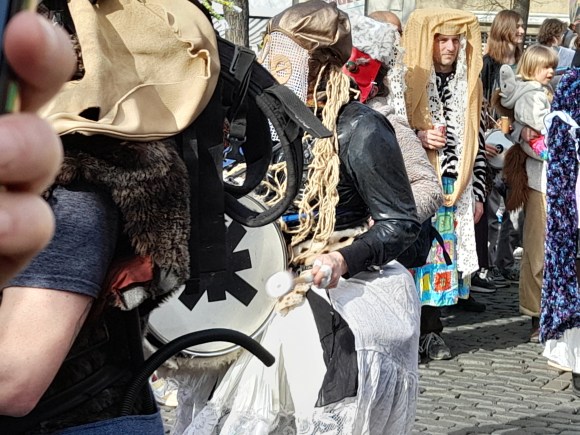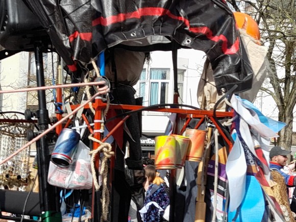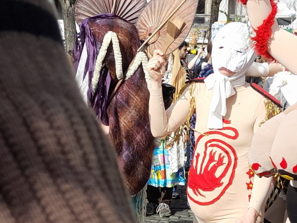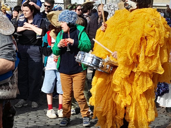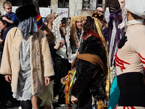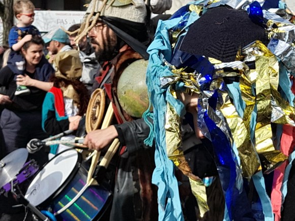 En occident, on dit « DIY » ,donc, mais le bien-être mental est individuel plus que collectif, tant l’individualisme a pénétré les sociétés du Nord, comme Jacques Tati le pressentait. Pour y échapper, une jeunesse alternative ne cesse de réinventer le carnaval, fait de bric et de brocs, et de rites et de rythmes du passé. Objet ? Constater le dérèglement climatique et les résistances et résilience en cours, dont le processus de décolonisation des espaces géographiques, physiques et mentaux grâce à la réappropriation des espaces publics pour parader et des déchets pour fabriquer les costumes, instruments de musique, etc.