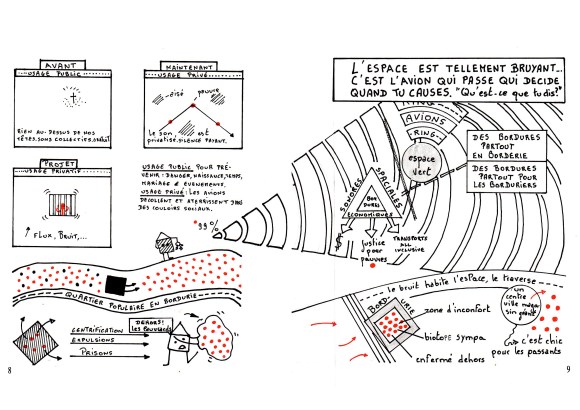 Cette carte représente avec un plan très schématisé l’espace de la future prison de Haren, à Haren, avant sa construction, pendant l’occupation (ZAD). Les points rouges sont les humains les plus pauvres expulsés du centre ville de Bruxelles (par exemple pertinent) vers les faubourgs (« bordurie »). Ce mouvement exofuge est lié à la gentrification, phénomène qui s’est accentué quand Bruxelles devient capitale européenne.