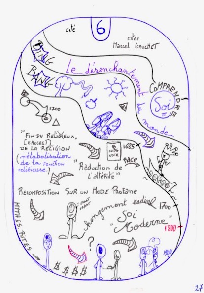 L’histoire récente de l’humanité est marquée, -à partir des XVIe et XVII e siècle, par un sexocide en Europe (entre 30 000 et 60 000 « sorcières » exécutées), des génocides hors Europe (« Amérique » :plus de 90% de la population décimée), de l’esclavagisme de masse (déportation de 15 à 20 millions d’Africains). Nous nommons ce type de pouvoir patriarcapitaliste raciste. Race, classe et genre (au minimum) sont des oppressions systémiques de ce système patriarcapitaliste. Anthropocène revient comme une ritournelle. Il s’agit de nommer notre ère. Métaphysique vient nommer une anthropologie spirituelle unifiante, donc ouverte au divers insondable. La philosophie y est partie prenante, comme la pré-/para-/post-colonie (cf. utopie, hétérotopie, rhizome).