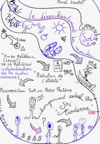 L’histoire de la folie est une mise en cage progressive qui accompagne l’extension de « la » raison cartésienne, européenne, qui est surtout la raison du plus fort. Et paradoxalement, tandis que la folie clinique, mentale et physique, -l’anormalité-, disparaissait des regards, sauf mise en scène, l’agressivité maligne, folie aussi assassine que suicidaire, allait bientôt trahir la Terre, avec la bombe atomique. Mais déjà, avec l’extermination systématique des monstres (humains et non humains, faune, flore, sous-sols, esprits, créatures monstrueuses…, vers toujours davantage de désenchantement.