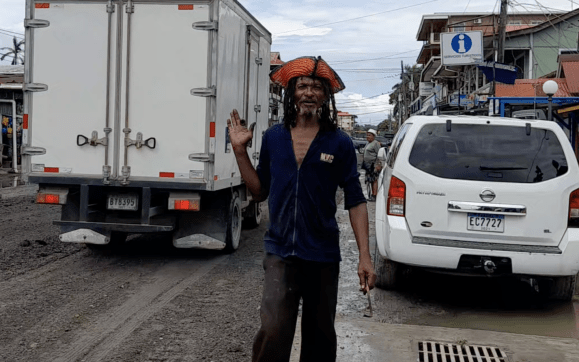 Cette transmutation/métamorphose/hybridation (?) du « déchet humain » en héros, personnage picaresque est aussi la transmutation du déchet en trésor. Dans la scène suivante, le « déchet » est l’eau. En effet, de l’eau de pluie stagne dans la rue principale de la ville de Colon, après la pluie, et se mélange avec des « eaux noires ». L’odeur est très forte et de ce fait, ce tas d’eau, si j’ose dire, est une pollution olfactive et menaçante aussi pour la santé. Ce tas d’eau, donc, cette pollution, les artisans de la place le nomme « ‘El mar PooPoo ».