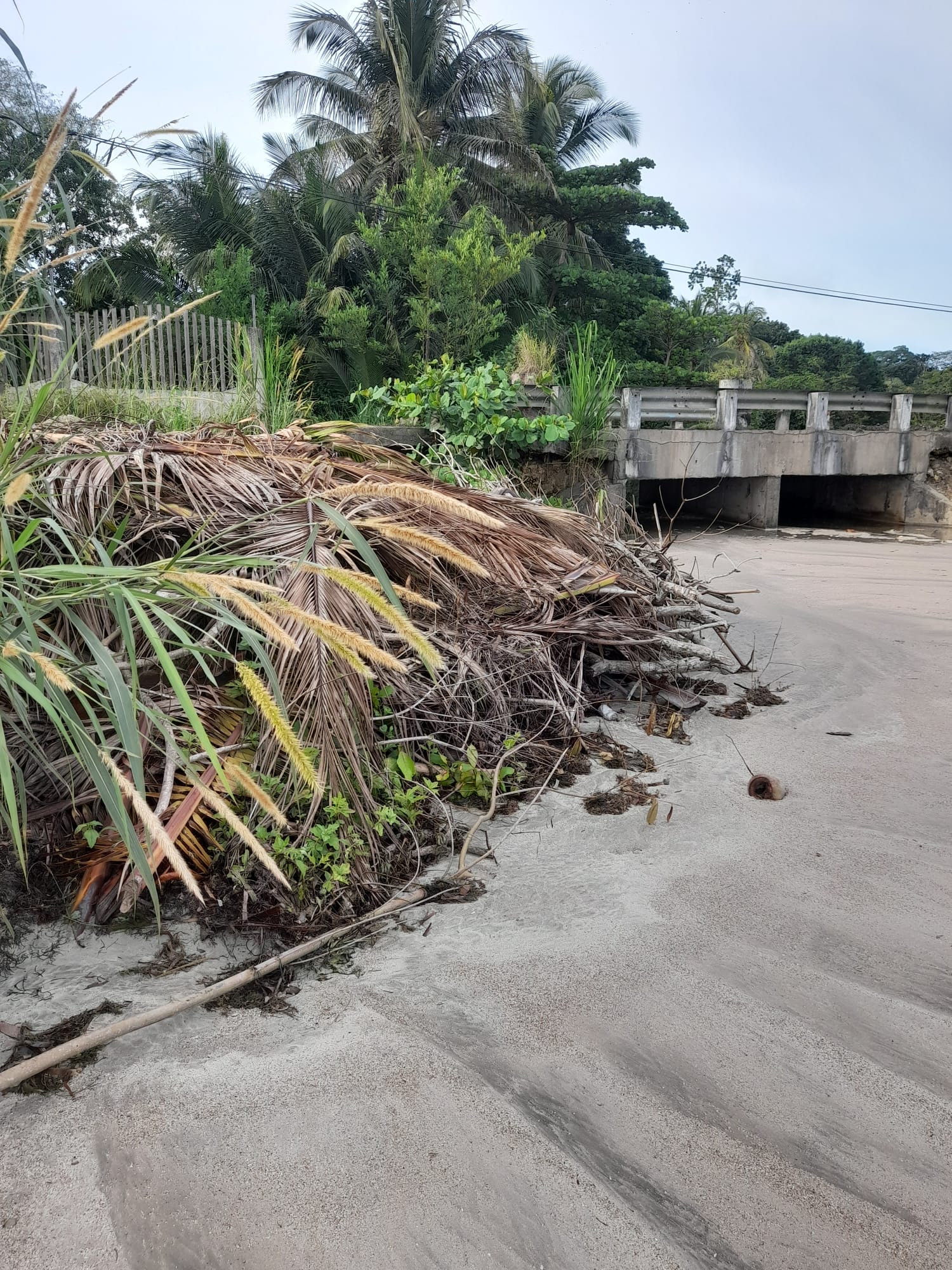Dans un contexte anthropocène, la plage idyllique n’existe plus. Certaines aubes, des jardiniers des plages, ouvriers locaux « polyvalents »*, financés par le gestionnaire du petit commerce qui est un expatrié occidental, s’emploient à restaurer le paysage à l’identique de la vision attendue par le touriste. En réalité, certains matins, la plage est envahie d’algues, de déchets végétaux (troncs ou feuilles, …), de coquillages brisés. La force des vagues grignote la plage et attaque les arbres (cocotiers, palmiers et amandier), l’eau de mer gagne du terrain sur l’espace de plage touristique.