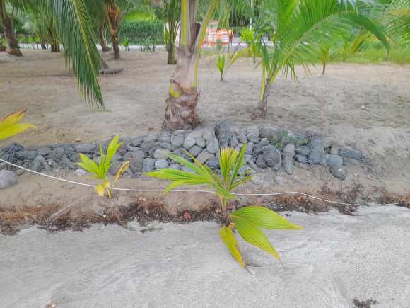 Pour restaurer le paysage, et anticiper l’érosion, les jardiniers des plages ont pris une série de mesures, certaines pour le long terme comme la plantation de jeunes palmiers, et d’autres plus « malléables », dégradables, comme la création de buttes, qui se remarquent par un empilement organisé de déchets organiques.