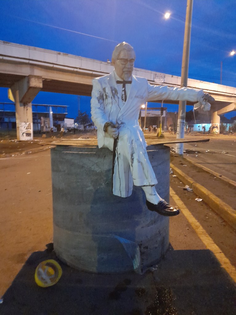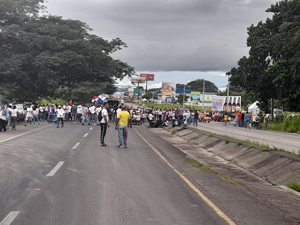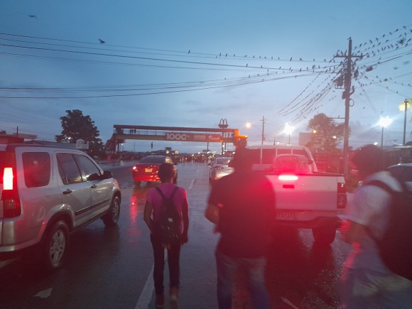 La route est bloquée, plus un seul bus. Une grande marche commence … sur la « Panaméricaine », cette autoroute qui traverse l’Amérique latine … qui nous amène à un barrage, et puis à un autre, et puis à un autre. Parfois nous attendons un taxi, cher, et c’est l’occasion de comprendre les raisons de ce blocage, et la solidarité nationale… Nous, c’est des centaines de personnes, panaméens, migrants, touristes perdus, femmes, enfants, tous crevards un peu, mais déterminés et solidaires.