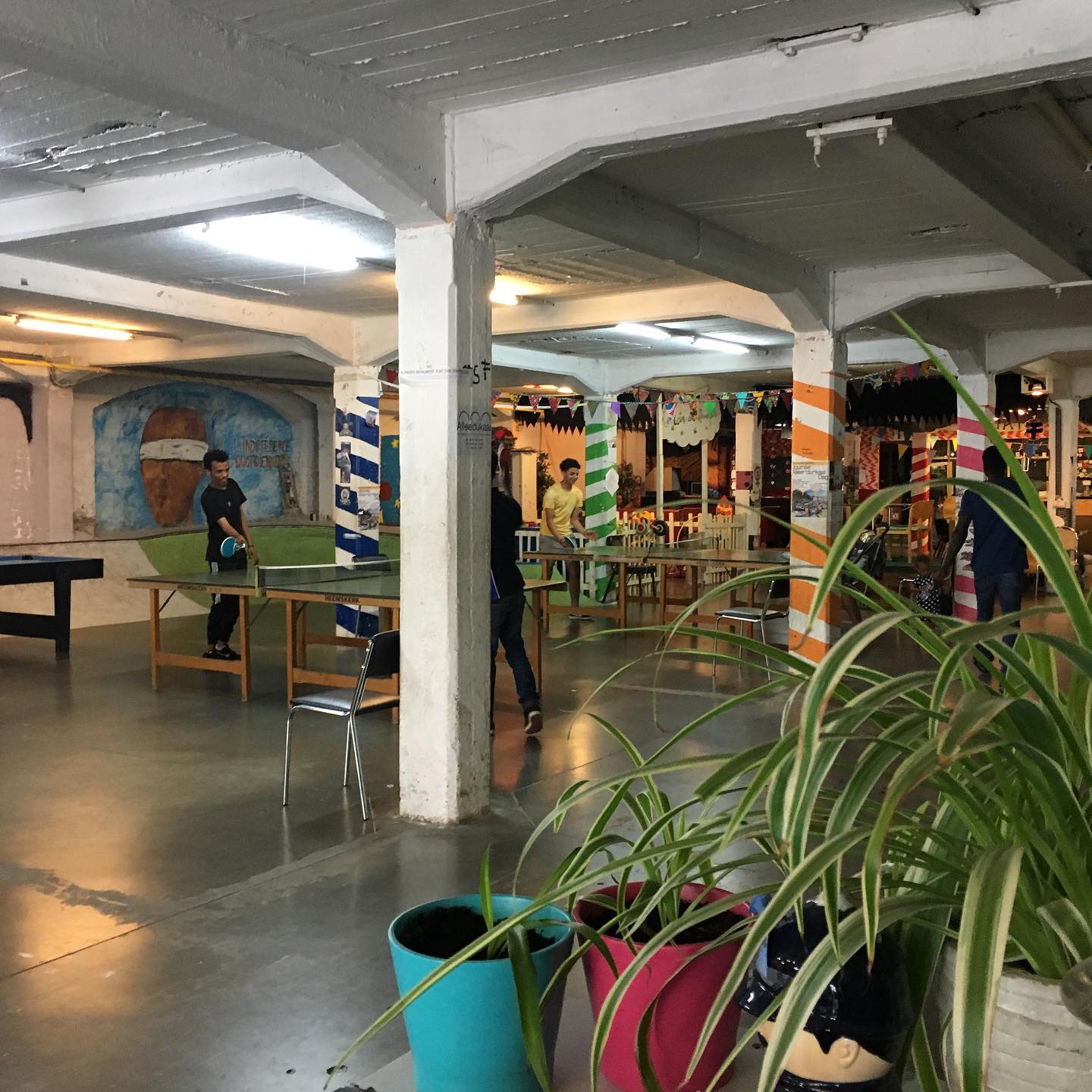 - de l’amicalité : la salle polyvalente accueille en journée qui le désire. Des boissons à 50 cents, des tables de ping pong, des WC, des gestionnaires ouverts et bobos, …